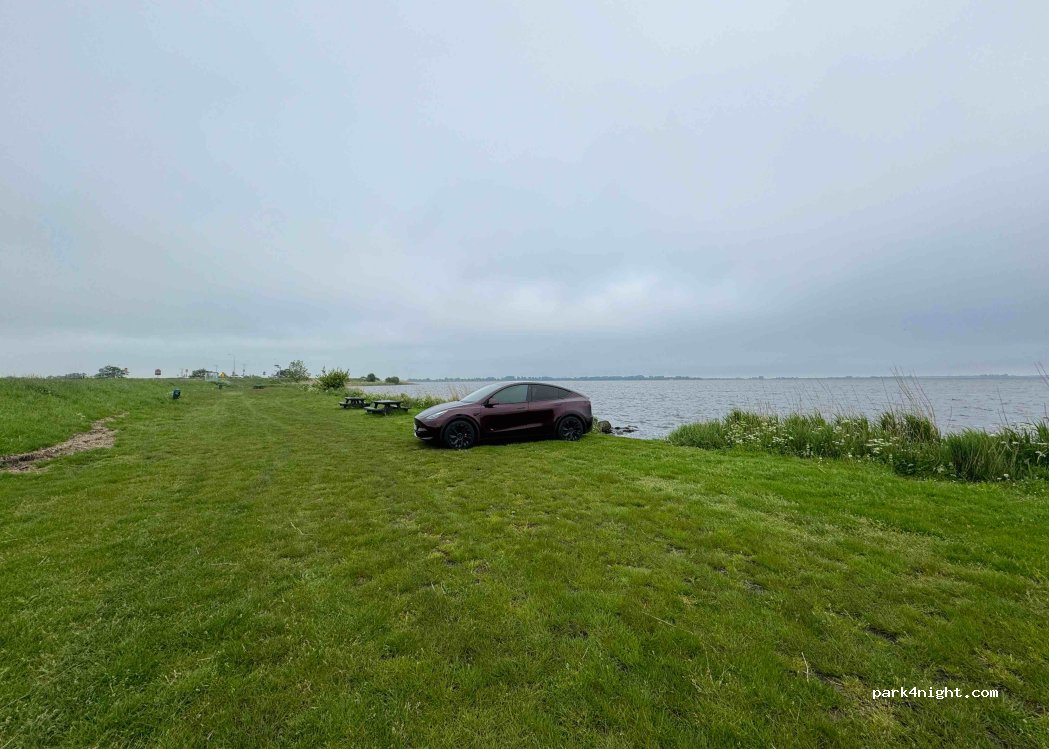 Très bel endroit pour dormir. Calme et au bord de l’eau. Petit plus : les tables de pic nique.