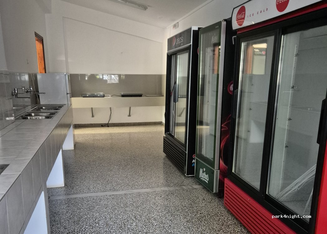 We parked our campervan under a roof right by the sea. There are showers available directly on the beach, and the sanitary facilities are very clean and well-maintained. We were surprised by the dishwashing area, which also includes fridges, freezers, cooktops. The owners are extremely friendly, thay arranged fresh, still-warm bread. There’s also a small market with basic essentials.