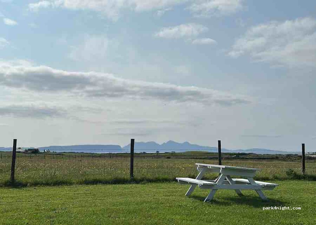 Great site, easy access from main road and 10 minutes walk from beach, 30 minutes walk to village of Arisaig. Very tidy and owners are really welcoming and friendly. Small site, so really peaceful with great views towards Eigg and Rhum. Bonus Indian Runner Ducks and a herd of deer roaming close by.