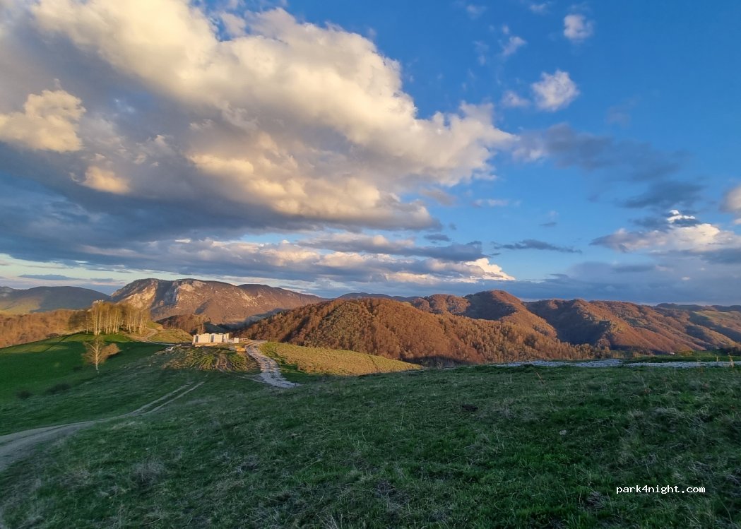 Wrong coordinates! It’s at (46.3168086, 23.4183843), a little further down the road. The spot has a great view, no shade and close to the road but maybe it’s possible to stay where the group of trees are. Bumpy road!
