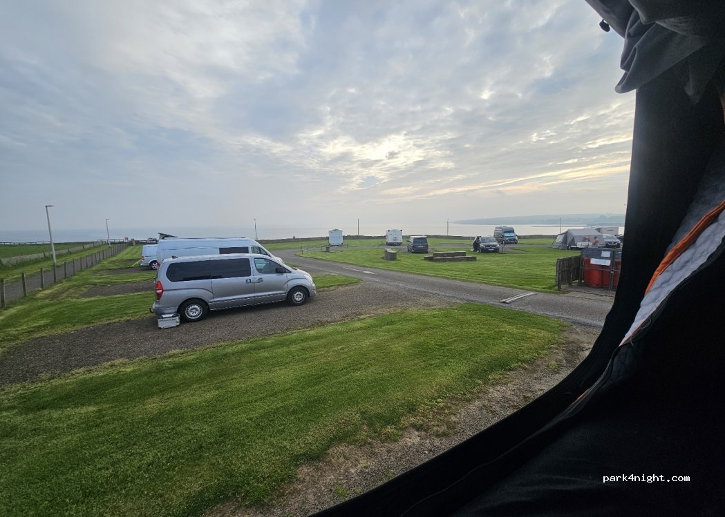 Thurso Bay Caravan and Camping Park. Great campsite right by the sea. That's right, the view is great, but you're still on the main street.. But the facilities could definitely be better maintained, the dryers still have the remains of a "year", the table water without hot water, not ideal for cleaning and unfortunately last but not least, you stink of fat when you leave the shop after registering. Shame for the £30 for 2 people