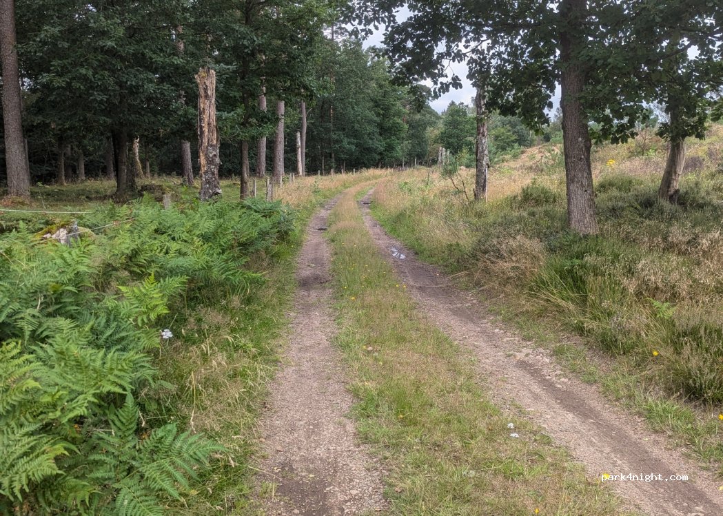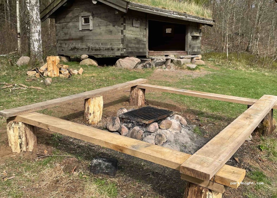 Un petit parking avec espace pour 2 campeurs. Un petit pont mène à un camping avec abri (possibilité de dormir) et cheminée. Malheureusement pas d'accès à la rivière car il y a un pâturage clôturé entre les deux. Mais vous pouvez marcher sur un joli chemin à travers la lande.