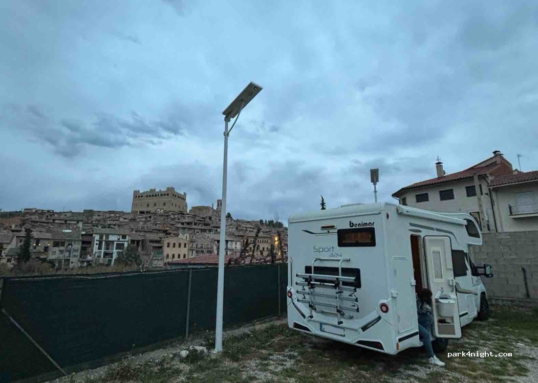 Gracias al ayuntamiento por habilitar esta zona. 4€ 24h. Puedes llenar agua y vaciar. El pueblo está a 5min andando y merece mucho la pena. Area muy concurrida en festivos