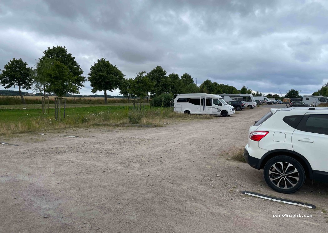 Großer Parkplatz. Ausdrücklich zugelassen für Wohnmobile bis 7,5 t. Übernachtungen sind nicht gestattet. Von hier aus sind es 1,5 km zum Hundestrand. Das Parken ist kostenlos
