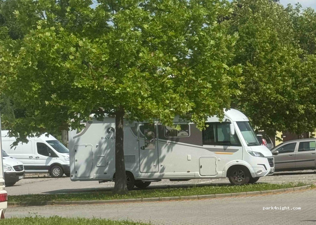Free (daytime) parking for the Aquatic centre. A few trees, no services, maximum 3,5t. Less then 10min walk to the Center. Great for bigger campers as there is a lot of space to manoeuvre.