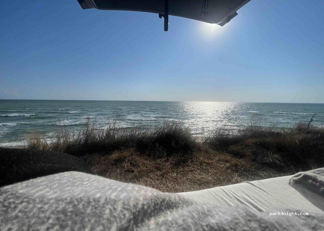 Ein schöner ruhiger Ort direkt am Strand mit toller Aussicht auf das Meer. Wir haben hier eine ruhige Nacht verbracht inklusive einem spektakulären Sonnenaufgang und Delfinpassage. Ein Kilometer weiter ist ein Strandbistro mit Stranddusche, die man nutzen kann. Der Weg dahin ist nicht besonders gut, nur mit Auto oder einem Van zu erreichen, auf keinem Fall mit einem größeren Camper. Auf dem gesamten Weg sind viele Stellplätze, weiter nördlicher besser zu erreichen.