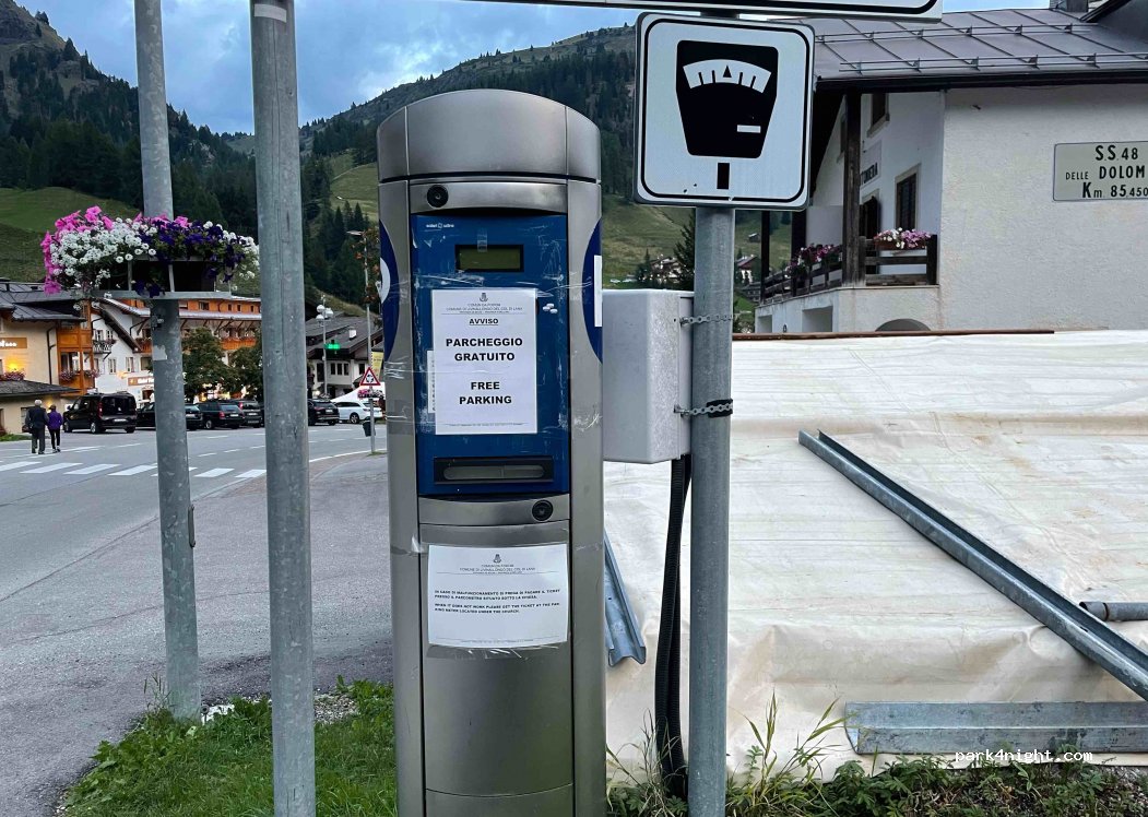 Parcheggio nel centro di Arabba. C'è un parchimetro