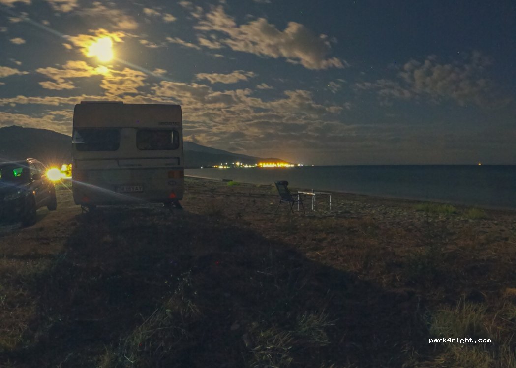 Many places to park, quiet night and wonderful beach. No one bothers you. Plus there’s a nice beach bar nearby with WiFi and toilets.