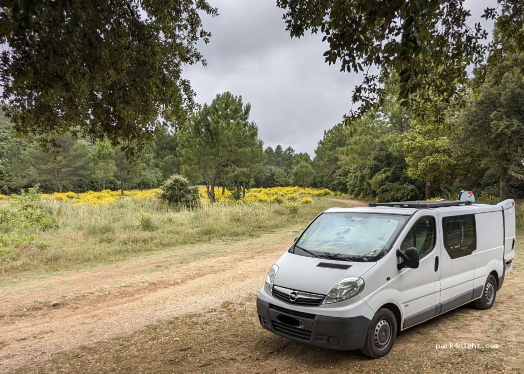 Spot idéal pour une nuit. De la place pour 4 ou 5 véhicules. Abords du lac de salagou possiblement accessibles en véhicule, à 5 min. Ou bien en vélo, comptez 20 min. Calme, peu de passage. Pas de réseau téléphonique, pas de services.