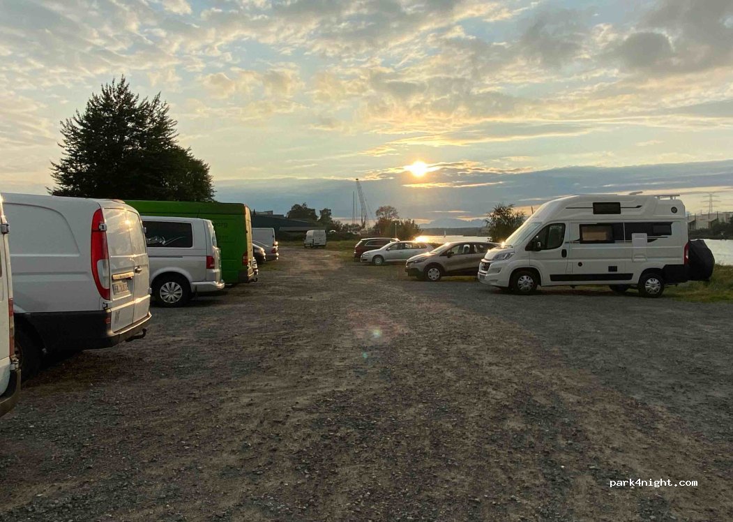 En arrivant nous avions plus envie de partir que d y passer la nuit. Un autre CC a fait demi tour. Zone industrielle, casse de voitures, et le parking en question est occupé par des voitures ventouses. Cependant la nuit a été calme malgré nos appréhensions. Un autre van est arrivé vers minuit. Sinon beau coucher de soleil, passages de gros bateaux. Juste bien pour une nuit gratuite de passage.