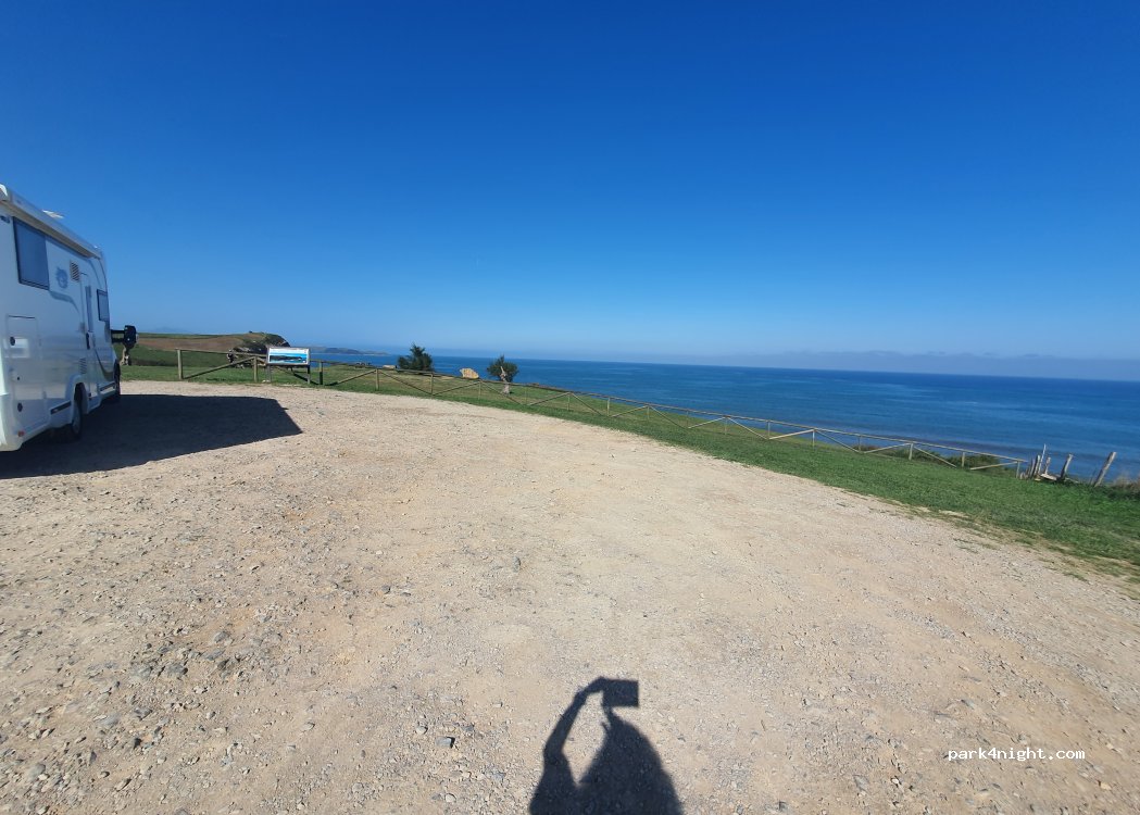 On ne peut rêver mieux. Endroit paradisiaque avec vue à 360° sur les picos de l'Europe enneigés et l'océan. Parking propre, très calme, le seul bruit est celui de l'océan.