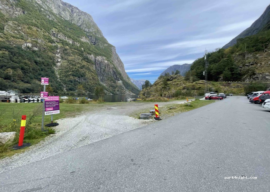 Haben hier einen Zwischenstopp tagsüber gemacht. Sehr viele, kostenlose Parkplätze. Autofähre und Fjordfähre starten hier, dazu kann man Kajaks mieten. Unser Tipp: Hydrobike! Einfach traumhaft über den Fjord, dazu mit 200 NOK p.P. für 2h jeden Penny wert. Dazu eine kostenlose heiße Dusche beim Activezentrum. Danke dafür!