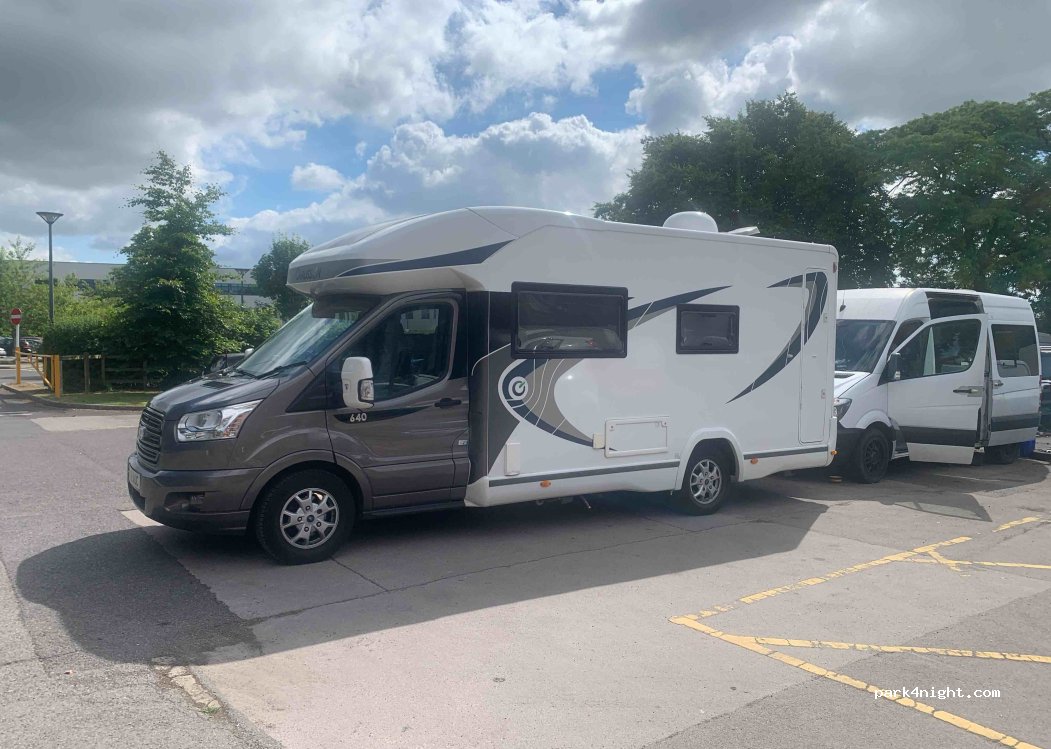 Private car park . Can park per day or overnight. small fee to pay -from £4.00 a day. NO HEIGHT BARRIER.