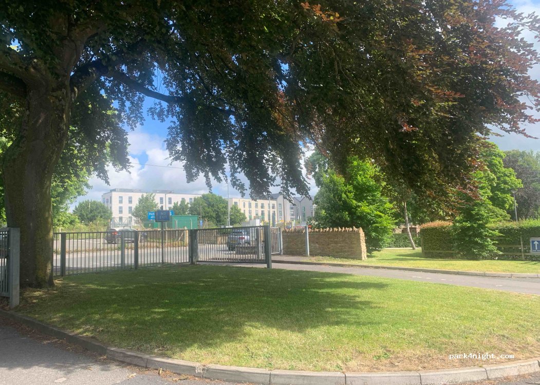 Do not be put off by 1st impressions because this is a good place to park if you want somewhere quiet and very safe near to the town centre, station and leisure centre. It is locked 6pm-6am but we were given a code for the gate by Neil who was there to meet us. Cost £5 overnight.