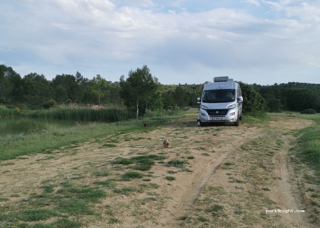 Petit coin très tranquille, facile d’accès. Nous étions en van. Étang et vignes à proximité. Quelques aboiements au loin, mais rien à signaler pendant la nuit. Pas de poubelles.