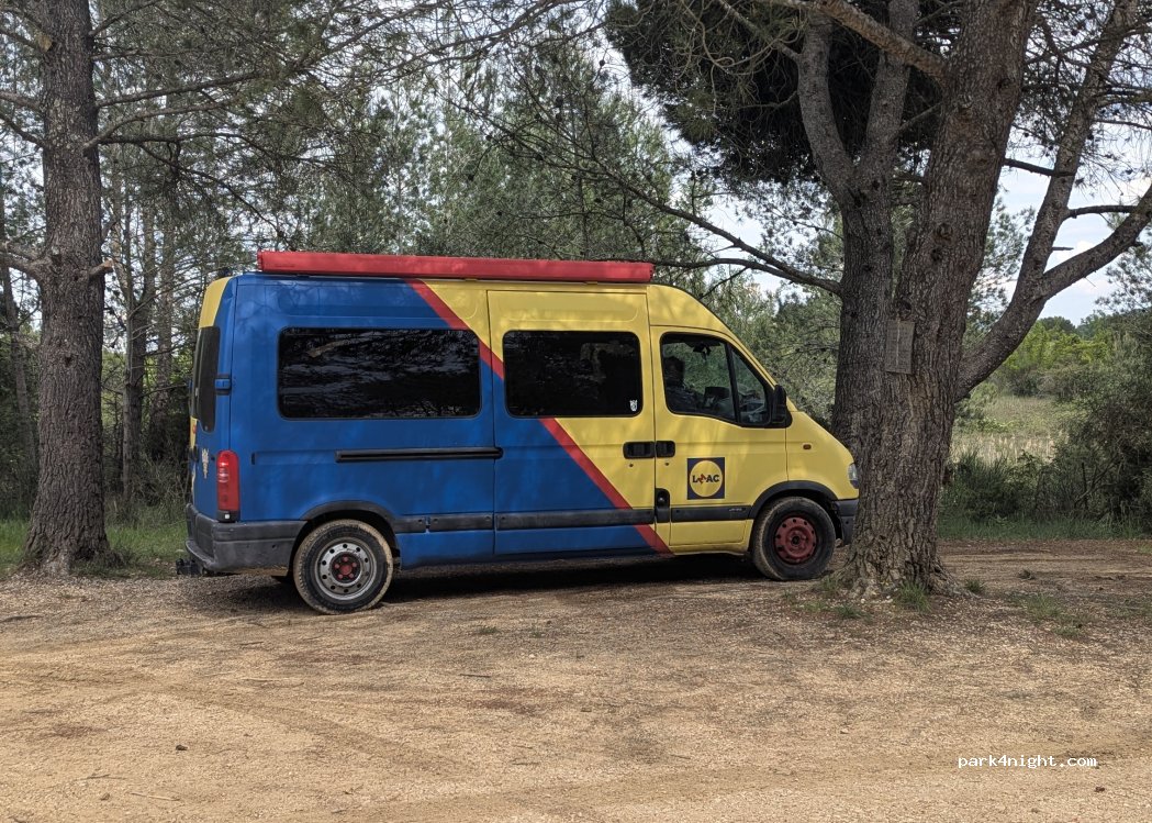 Un lieu coupé de tout, aéré, très propre, un coin ombragé et un autre près d'un étang. Feux interdits. Accès facile mais boueux en cas de pluie, on est passé tranquille avec notre cc malgré tout, en suivant les conseils d'une park4nighteuse qui indiquait le chemin nord (le premier proposé par ggmaps en venant d'uzes). Il y a beaucoup d'espace, somptueux couché de soleil après l'orage. Favori !