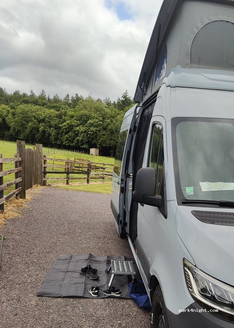 Nice place on a working farm. The place behind the farm is quite sloping so have your ramps ready. Facilities are basic. Nice hosts