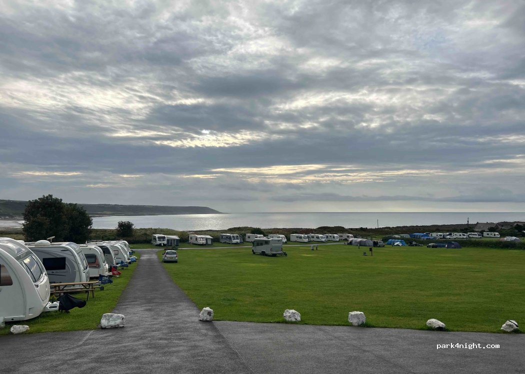 A delightful large campsite, with great sea views, especially the bottom field. Spotlessly clean toilets, a well stocked shop on site, a short stroll into the village for cafes and pubs and coastal or beach walks straight from the site. Overall a well maintained and well organised campsite, perfect for the beach/ coastal break.
