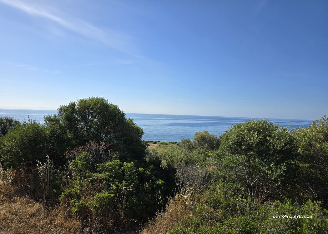 Schotterparkplatz mit Blick aufs Meer, leider liegt in den Sträuchern etwas Müll aber für eine Nacht ausreichend. Wir waren hier mit einem Crafter L3H3 4x4 ist aber auch ohne Allrad zugänglich.