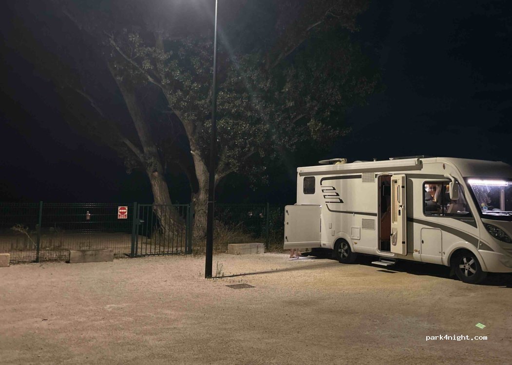 Bien pour une halte nocturne. Assez tranquille et plutôt calme. Ça reste un parking mais plus calme que celui de l’arc de triomphe d’Orange où on s’était d’abord arrêté. Interdit au + de 3,5 t.