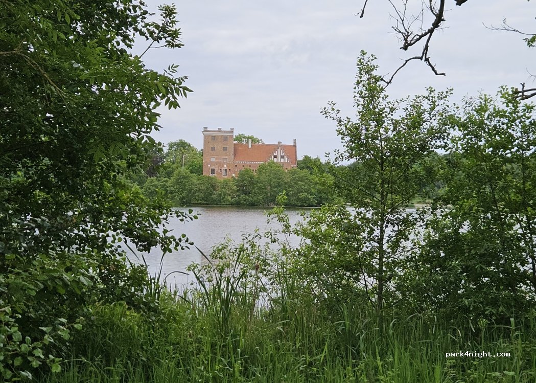 Für eine Nacht okay, Toilette sauber hinter dem Schloss, kleine Mülleimer vorhanden, kleiner See zum Angeln sogar mit kleinen Ruderbooten beides über Ifiskse buchbar. Tagsüber einiges an Besuchsverkehr, Straße mäßig befahren, nachts okay. Im Schloss Museum und Restaurant (11-16 Uhr)
