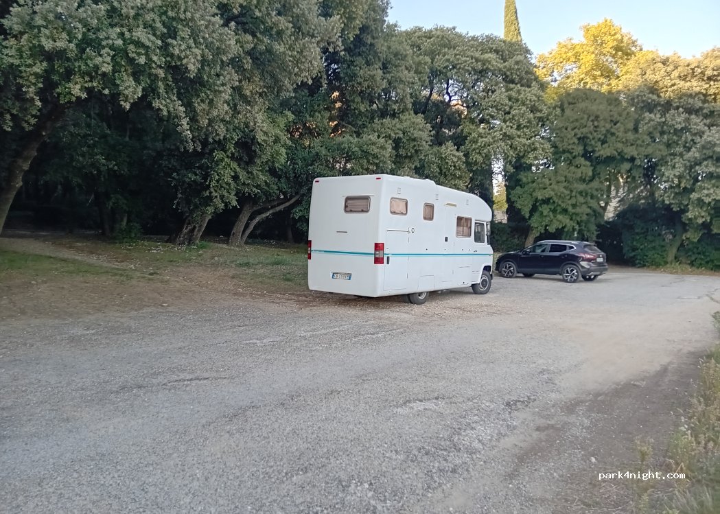 Emplacement calme. Nous y sommes restés deux nuits sans aucun soucis. Balade à faire juste un peu plus haut, à quelques mètres. Vue magnifique sur le château d’un côté et le mont ventoux + dentelles de Montmirail de l’autre.