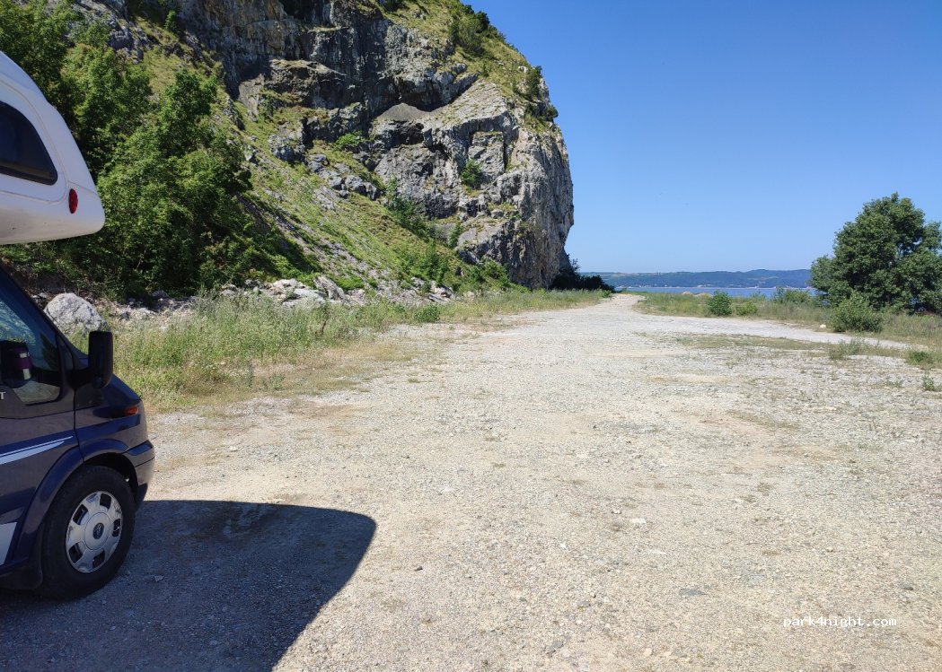 Flat space very close to Danube river and road. Good for overnigt stay. No facilities. Nice view on river and Golubac fortress. Accessible by large vehicles.
