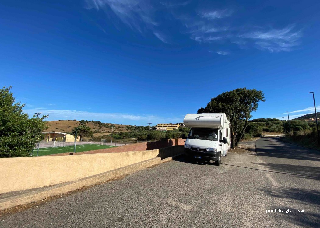 Abbiamo parcheggiato qua il nostro camper da 7m per andare alla festa della birra a metà agosto. Abbiamo chiesto a una pattuglia che passava di lì se fosse un problema anche pernottare e ci hanno detto di no. Leggermente in pendenza e senza servizi ma tranquillo e comodo.