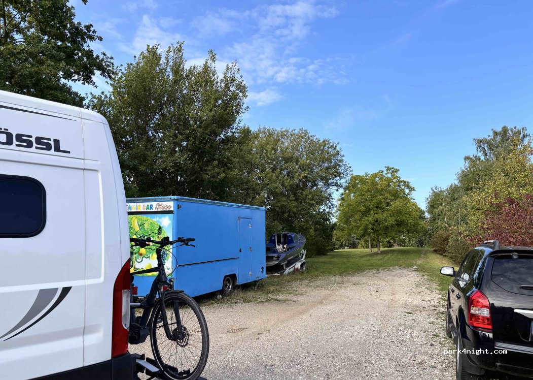 kleiner ruhiger und relativ gerader offizieller Stellplatz im Grünen auf Schotter. Direkt an der Bahnlinie. Zug kommt einmal pro Stunde, aber nicht mehr von 23 Uhr - 07 Uhr - dadurch gut zum schlafen. Gerne wieder