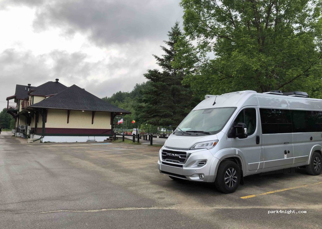 Very nice large public day and night parking lot, gravel, accessible, quiet and free, right next to the Labelle train station-bistro-restaurant and therefore the Le p'tit train du nord bike path. Next to a large park with picnic tables, exercise area, pétanque etc. Also, only 200 meters from the beach and access to the Rivière-Rouge.