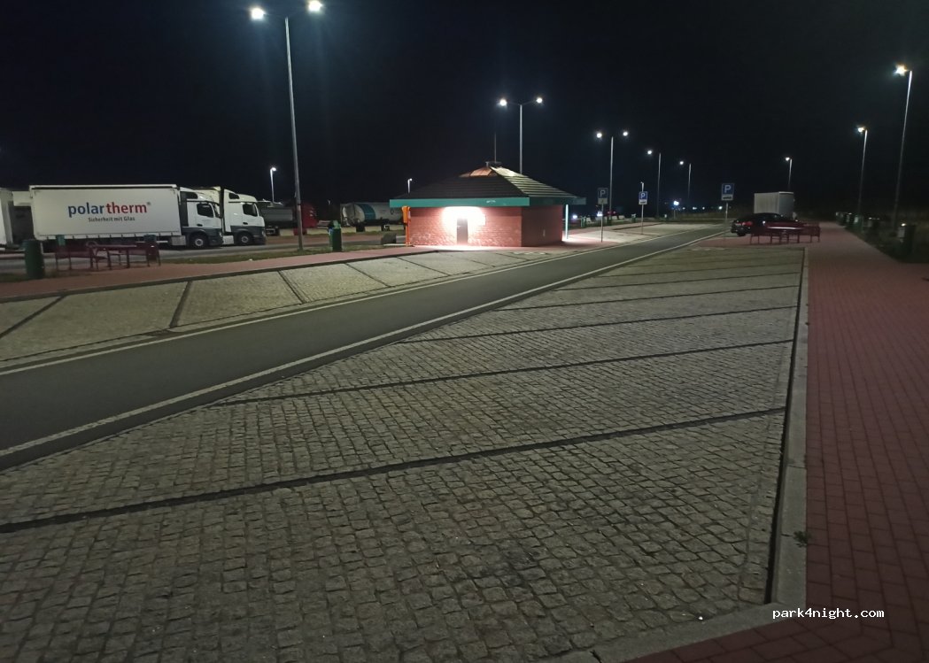 Parking along the highway. You can hear the noise of cars all night. But there is a clean toilet with water (also for the disabled), garbage cans and picnic tables. The parking lot is illuminated.