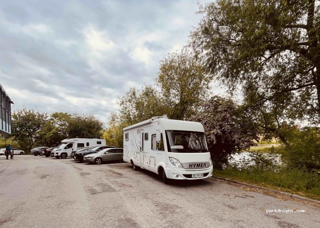 Sehr guter Parkplatz auch mit Campern ist es kein Problem dort zu parken. Man findet eigentlich immer einen Parkplatz. Man sollte sich aber an die 3 Stunden Begrenzung halten weil dort regelmäßig ein Kontrolleur rumläuft. Zu Fuß erreicht man die Stadt in 20min.