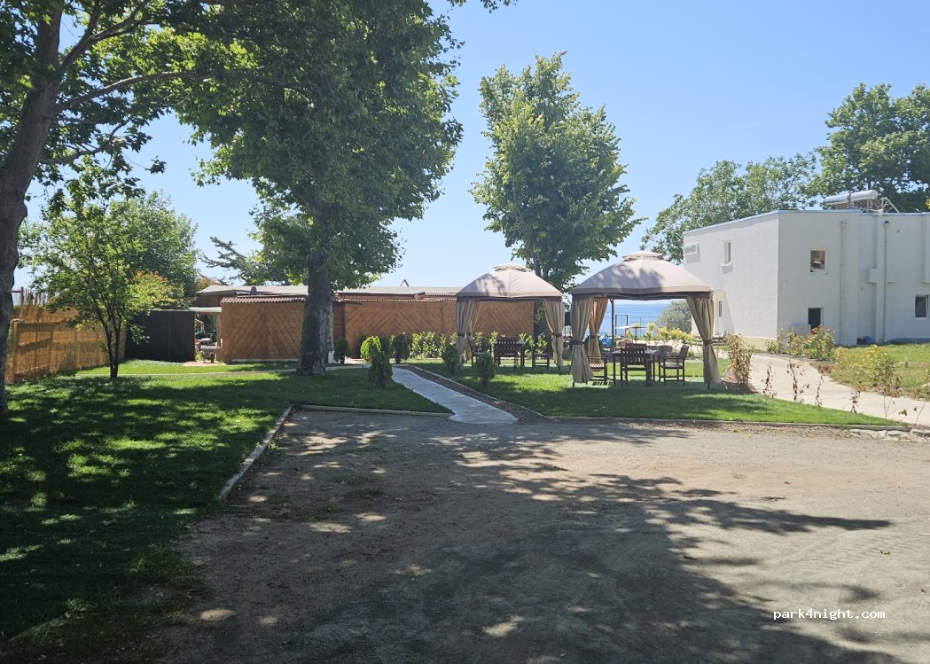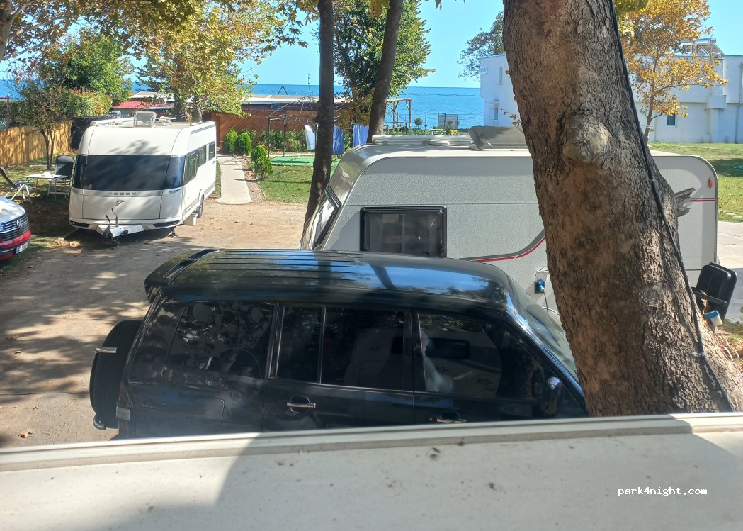 Een heel prettige plek aan de Zwarte Zee. De campers parkeren in een boomrijke omgeving, er is stroom vanaf het appartementencomplex. Op diverse plekken watertappunten, buitendouches. Er zijn twee douches en 2 hurktoiletten. Supermarkt, winkels en restaurants vlakbij. Strand voor de deur. Bar met uitzicht over de Zwarte Zee. Lev 35 voor 2 pers, 1 camper, electra p/n