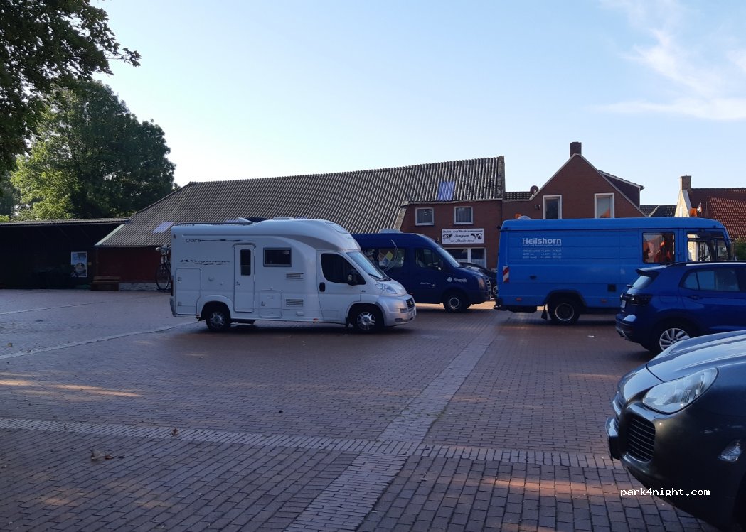 Parking avec toilettes publiques toujours ouvert sur la place centrale du village. Endroit calme. Proche du port de plaisance avec possibilité de marche. Visitez le musée du lait et des produits laitiers le week-end.
