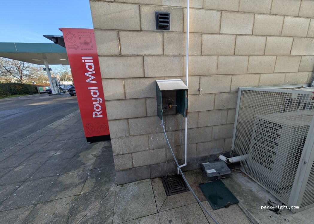 Station essence Morrisons avec robinet à l'arrière du bâtiment.