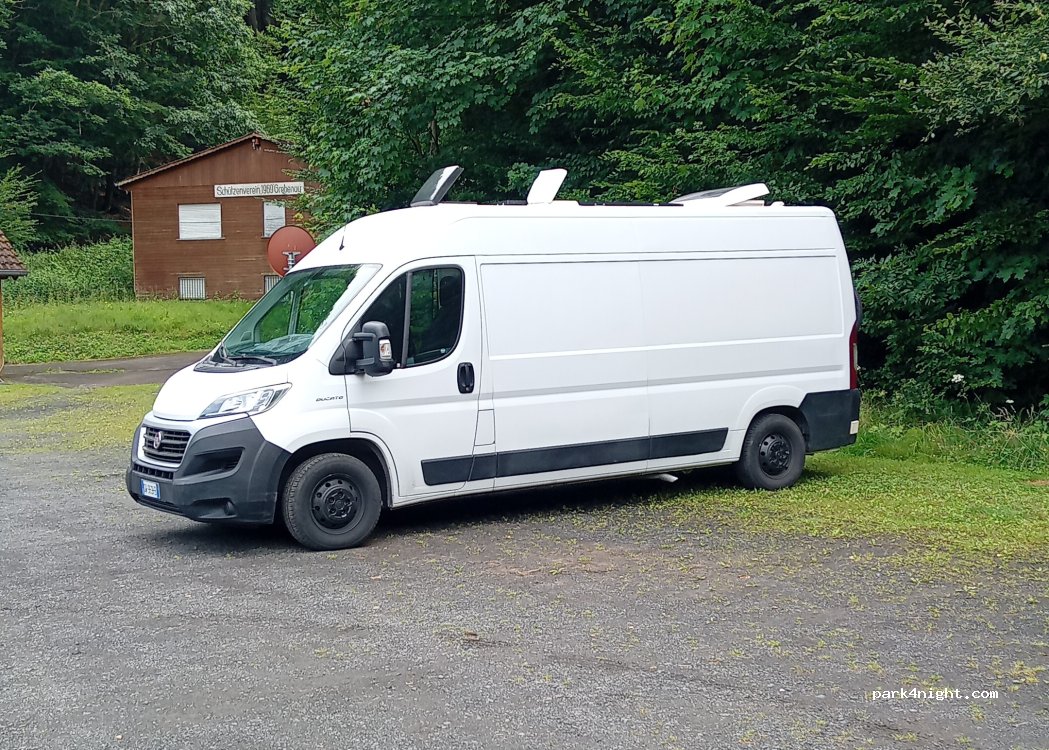 Parkplatz vor dem Schützenverein Grebenau, direkt am Schwarzbachteich.
