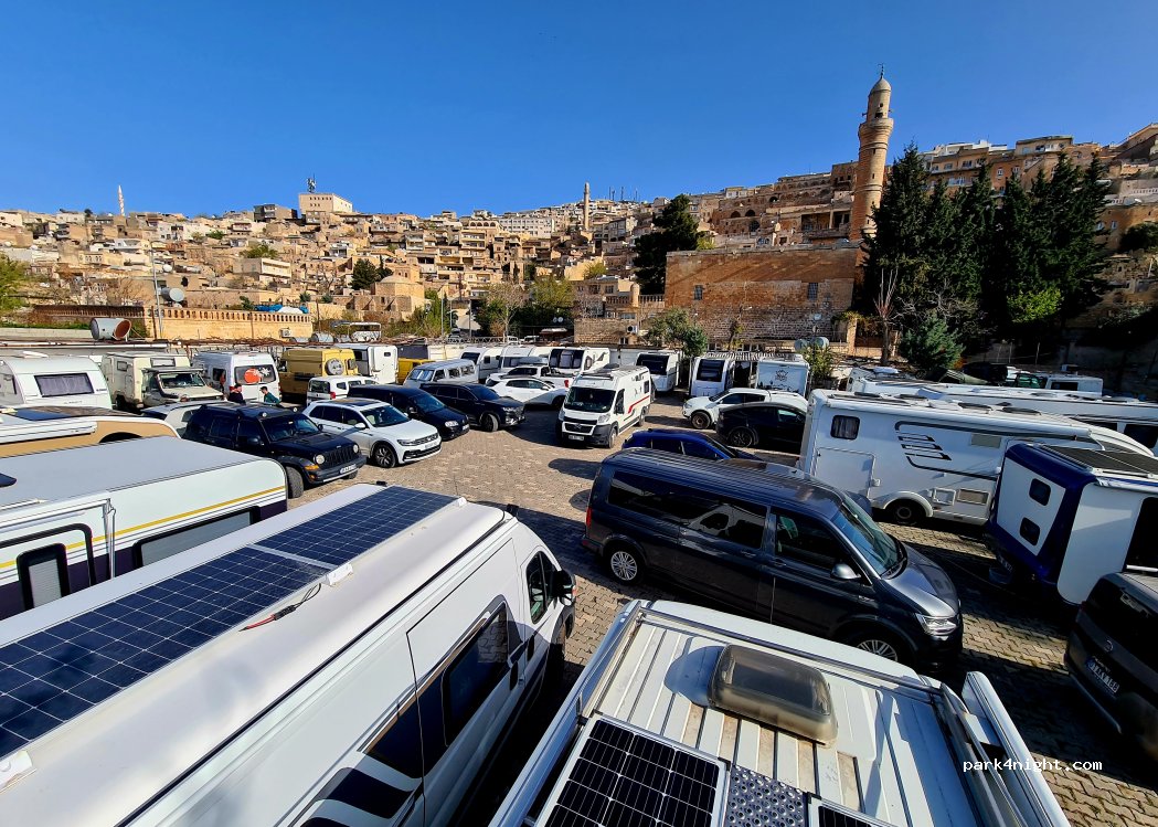 Nice & Safe place for Parking/Stay in Mardin. 100% safe and operated by a nice family group. You can reach the old city centre by 10 minutes walking .Minibuses are also available/passing throughout the street continuously.All the facilities that a camper needs are all available( don't make your expectations to high about luxury, enough for survive;)) ).Wish you a good holiday in Türkiye.