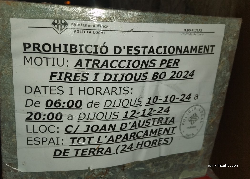 lugar al lado de la policía local. está sombreado y suelen haber más furgonetas y autocaravanas. Justo al lado hay un parque con mesas donde hacer picnic. delante está el bar polígono inca que abre temprano. Pasamos una noche tranquila. lo único malo es bastante coche por la zona y la mañana con movimiento de gente.