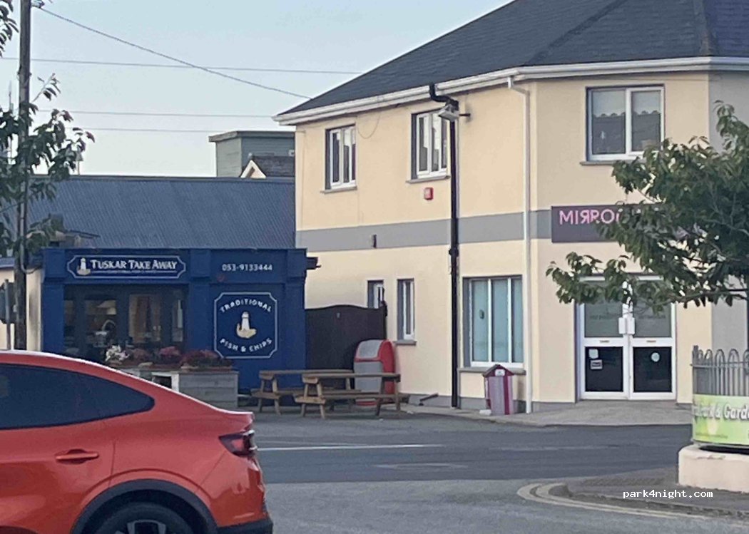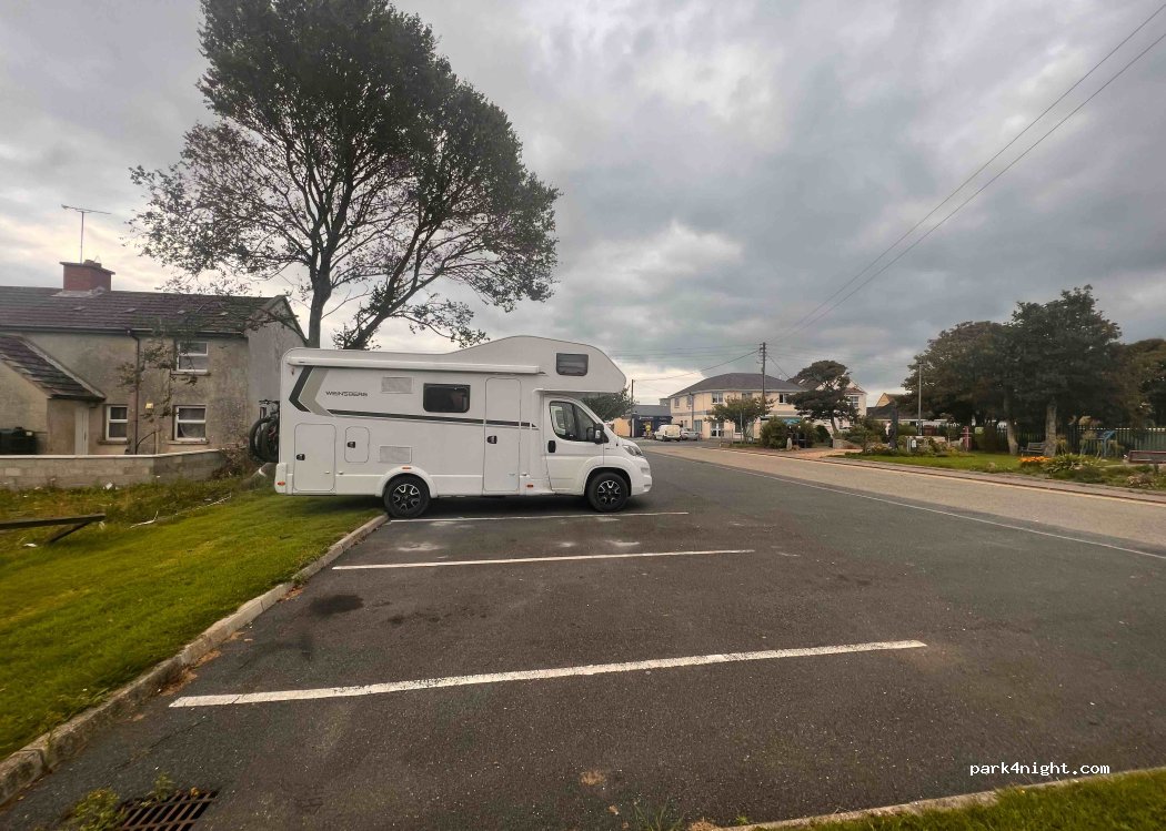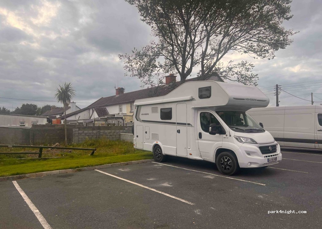 Spent the night here last night- 1 other MH. Arrived after ferry and long day at 8pm. As mentioned the chipper was excellent. Haven’t tasted haddock that good since Hull many moons ago. Asked lovely lady in chippy for nearest pub and was directed to Railway social club-another friendly lady and a great pint of Guinness. Quiet night with zero disturbances. Superb start to my Eire trip.