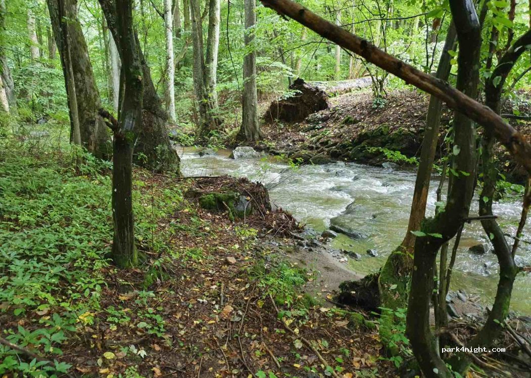 Great spot for spending night here. Its in the forrest beside the stream. Quiet place, restaurant/pub nearby which have very nice people. We had a lot of fun with them.. Good beer, wurst, also in late time.