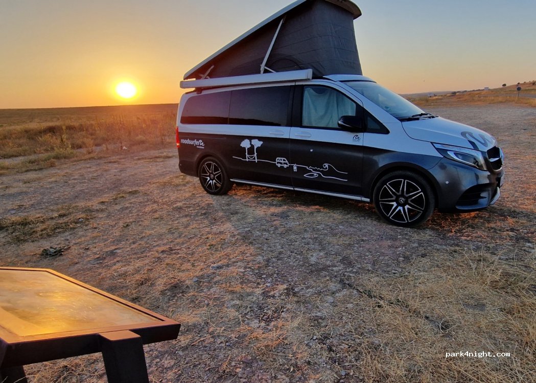Schön und sehr ruhig. Ab und zu Autos die entlang fahren, aber zu wenig um störend zu sein. Wir waren am Tag in Salamanca und haben hier übernachtet auf dem Weg nach Mérida.