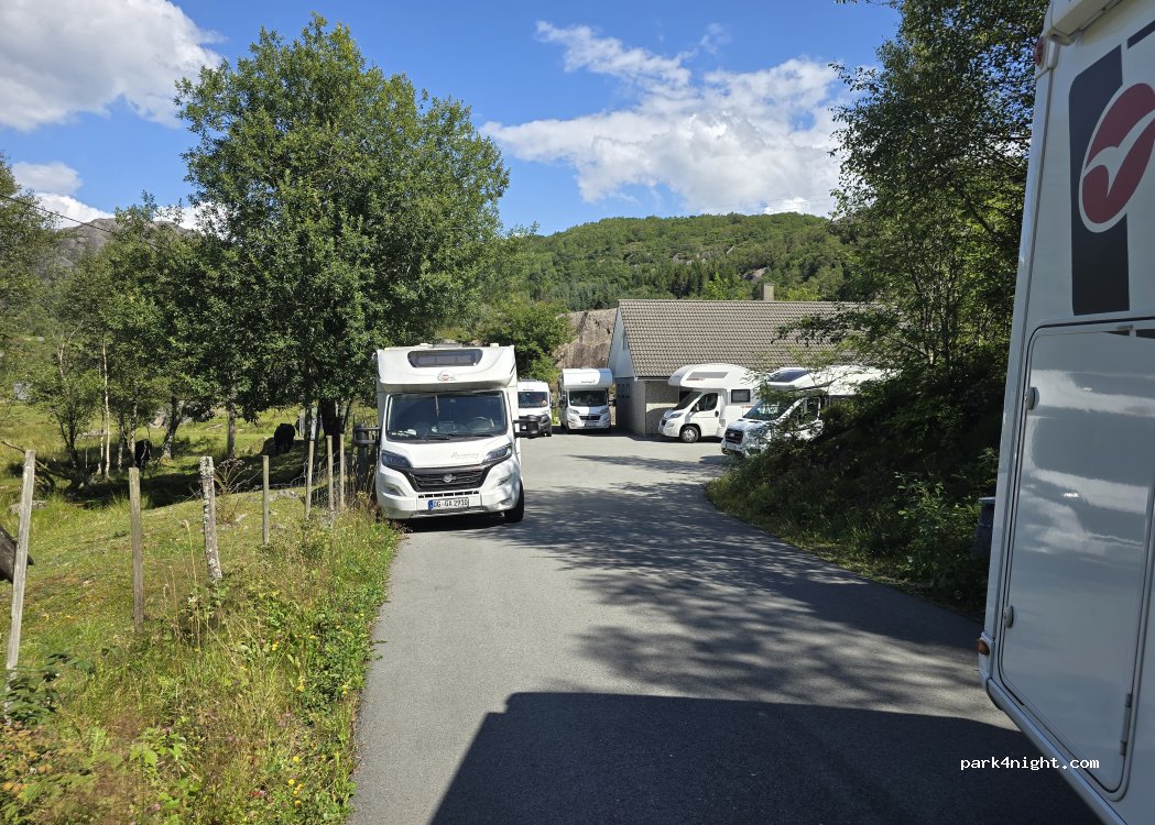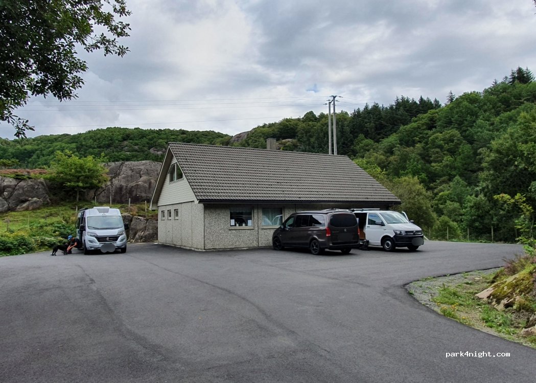 Parking très pratique pour aller visiter la grotte (fléchage bleu qui commence 50 mètres plus loin que le parking). Géré par une association qui suggère un paiement de 50 nok par app. Route d'accès peu large.