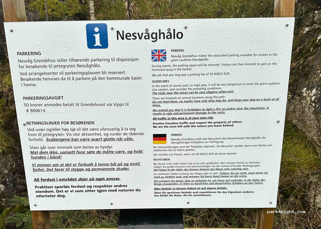 Now NOK 50 cash payment requested into honesty box under sign. This is the town meeting house so there might be the odd occasion when the car park is full of locals.