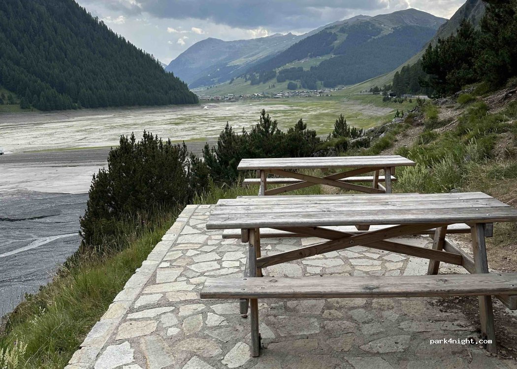 Zelo lepo in mirno parkirišče z razgledom na Livigno. Ponoči skoraj ni prometa, tako, da se brez problema spi.