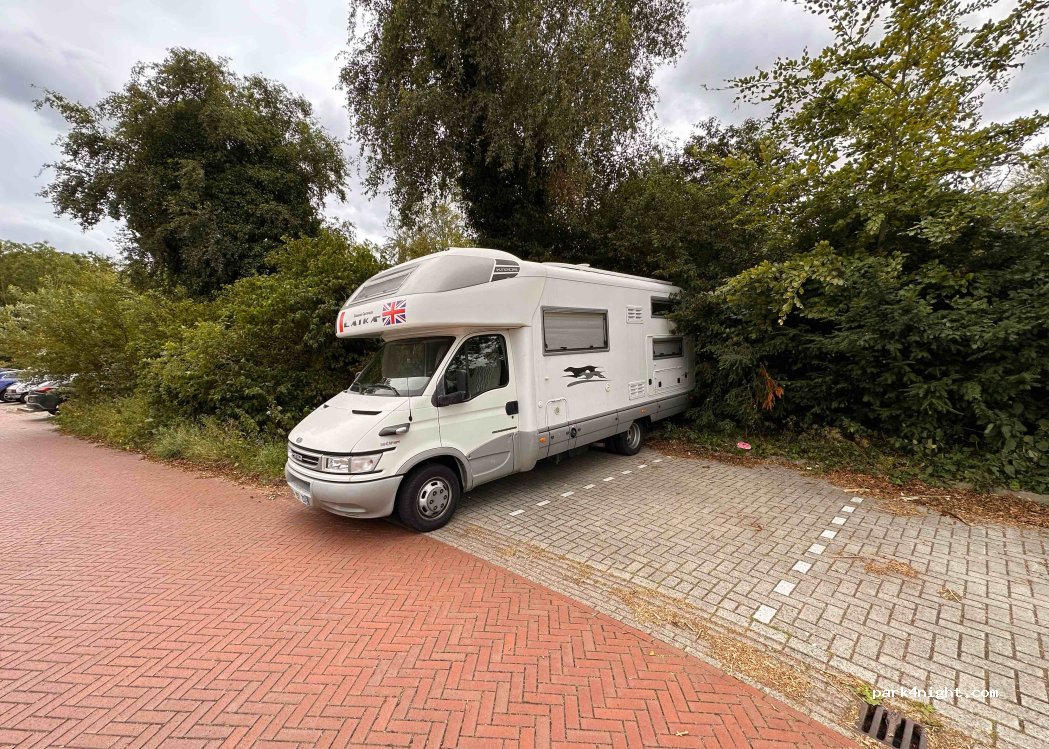 Parfait pour des petites camionnettes ou des vans. Nous avons néanmoins réussi à garer notre camping-car de 7,5m sur une place plus grande que les autres. (Grand porte-à-faux) parking bien pour la journée à 3kms du centre, et pour la nuit mais uniquement les week-ends et vacances (parking d’école) services : uniquement poubelles et une belle aire de jeux pour enfants calme et propre.