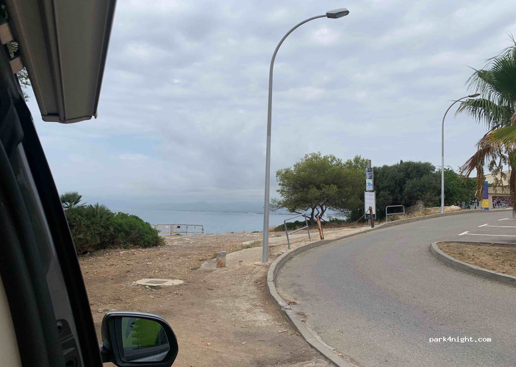 Welcoming van parking space with view of the Cap de Salou. Negative point: sloping and a lot of dog poop. You can park along the bushes at the bottom of the parking lot which is not sloping. Quiet area, the police came by several times and didn't tell us anything