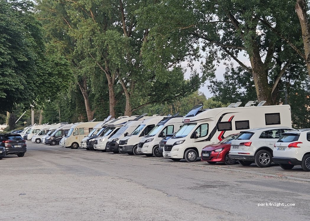 Merci à la commune pour ce lieu agréable et très bien placé ça nous a permis de passer 2 jours et profiter des restaurants et autres activités En plus à moins de 1 km vous trouverez le magasin Leclerc pour compléter vos achats Du passage dans la journée mettra calme la nuit Vous recommandez vivement ce lieu Où on a vraiment l'impression que l'on apprécie notre visite dans leur ville