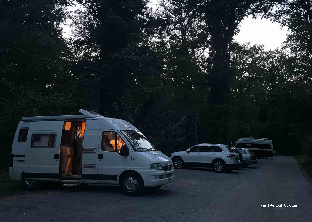 Parcheggio su asfalto/ghiaina, quasi tutti i posti in piano. Molto silenzioso, al nostro arrivo (20.30) c’erano molte macchine parcheggiate per via del ristorante e delle passeggiate, poi si è svuotato completamente. Notte silenziosissima e tranquilla. Molto vicino all’autostrada, è un’ottima sosta per poi ripartire il giorno dopo! Lasciare pulito per preservare posti del genere, grazie!