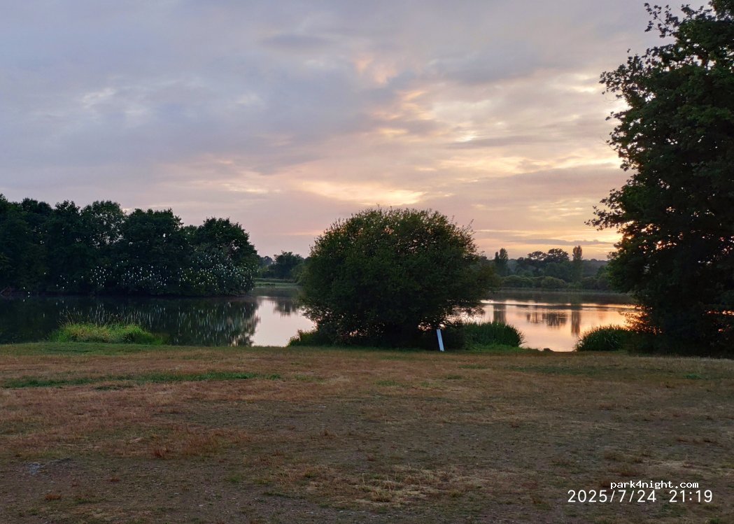 bel endroit, vaste, au bord d'un plan d'eau avec zones ombragées je pense que l'on pourrait y dormir, mais pas vu de services.