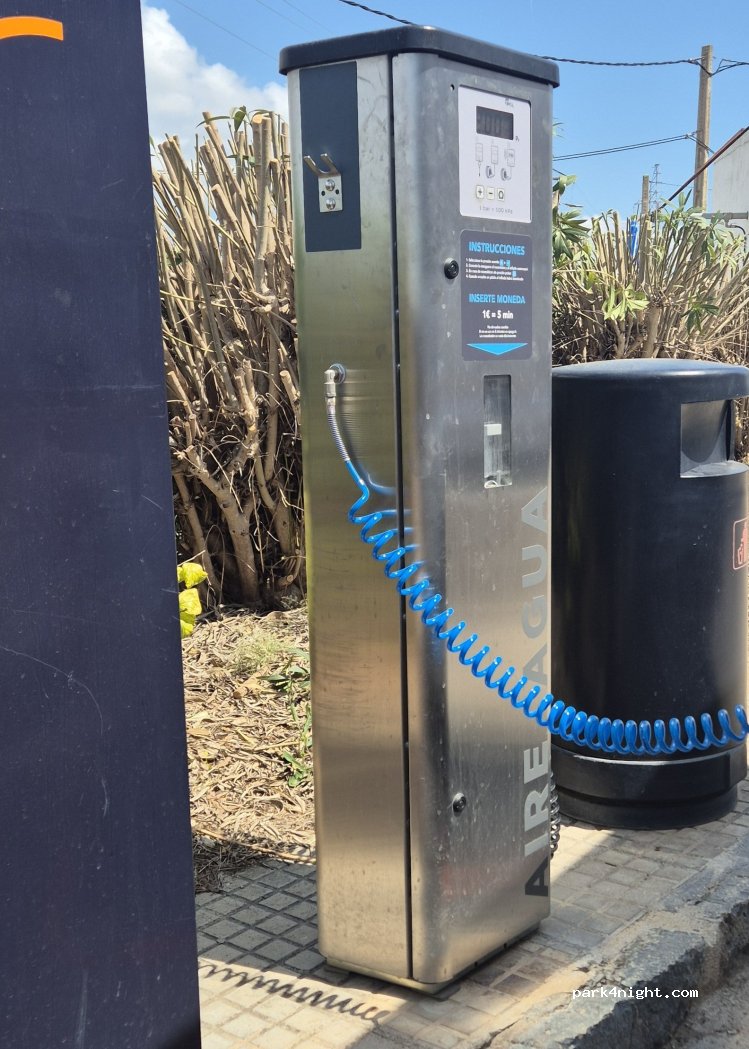 Wasser ist verfügbar über den üblichen kleinen Zapfhahn und ist kostenlos. Als Dank kaufen wir bei der Tankstelle ein paar Getränke oder ähnliches.